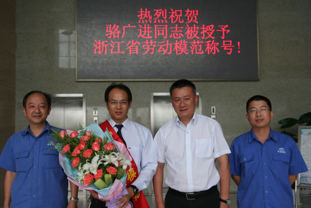 在新中國成立60周年之際,9月28日,浙江省人民政府在省人民大會堂隆重舉行“浙江省勞動模范表彰大會”,我公司駱廣進同志被授予浙江省勞動模范榮譽稱號。